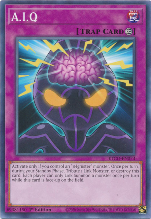 Activate only if you control an "@Ignister" monster. Once per turn, during your Standby Phase, Tribute 1 Link Monster, or destroy this card. Each player can only Link Summon a monster once per turn while this card is face-up on the field.